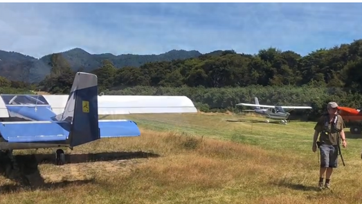 I could see the breeze had picked up while we were lunching and this became more obvious when I arrived at Motueka and watched the windsocks oscillating in the 20 kts northeast breeze. I landed on the grass runway and put the aircraft into a little wind protected area beside the Skydive Abel Tasman base before setting off on foot to buy my medications.